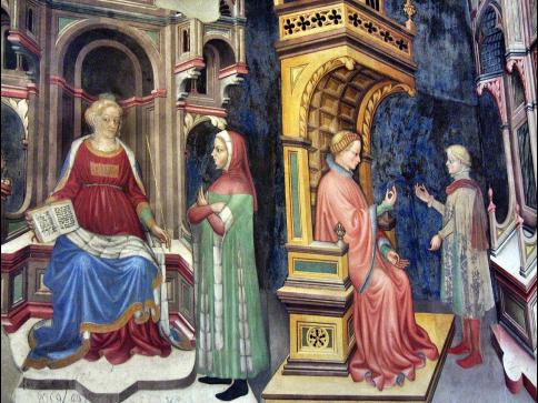 В 1411-1412 годах Джентиле был в Фолиньо, где выполнял рисунки для декоративного цикла палаццо Тринчи по заказу Уголино III. Сложная декоративная программа, изысканно светская, прославляла преемственность междуG господством Тринчи и римскими императорами и была вдохновлена гуманистом Франческо да Фиано. Обнаружили документы о выплатах художнику Джентиле да Фабриано и его мастерской (указан Якопо из Венеции, возможно Якопо Беллини, который был в то время подростком). 27 августа 1411 года Джентиле получил 225 золотых скудо “за зал императоров, комнату с розами (зал свободных наук и планет) и за Лоджию Ромула и Ремо”.