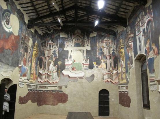 Забвение циклов фресок Палаццо Тринчи было связано с историческими причинами, с своего рода Damnatio memoriae (Забвение памяти), которому подверглись Тринчи после установления папского господства в городе. Фрески были закрашены и забыты, изображения выдающихся членов семьи стерты со стен, остались только некоторые инициалы.