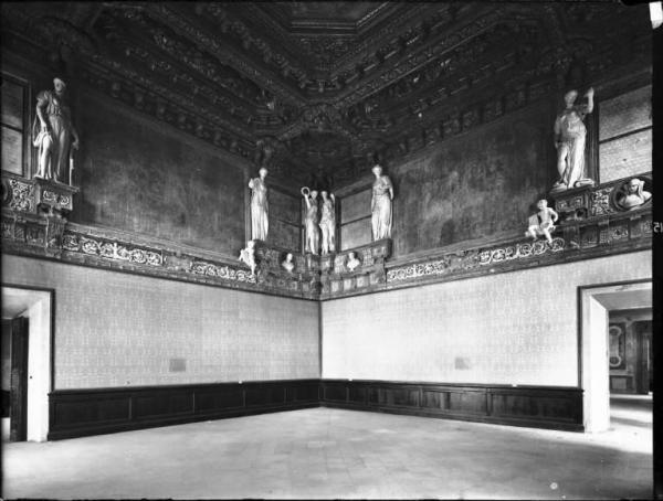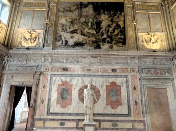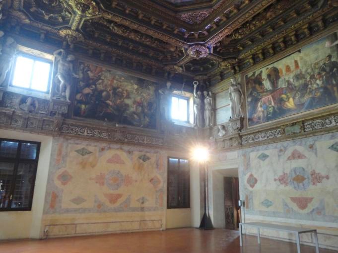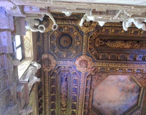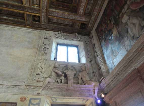 Триумф Гонзага продолжался на потолке зала Маркизов, 8-угольный плафон (боттега Тинторетто или Лоренцо Коста?), к сожалению, плохо сохранился, упала треть живописного слоя из-за прогнившей изоляции потолка. В Зале скульптуры Викторий из стукка.