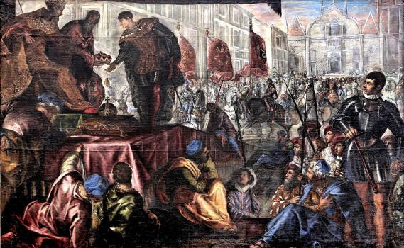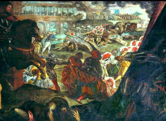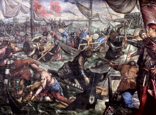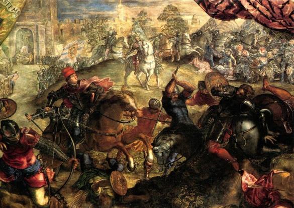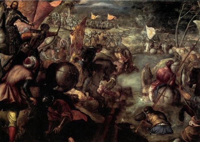 Для Кардинала Эрколе Гонзага художник в 1562 году написал полотно Турецкая Битва. Все работы для Мантуи Тинторетто писал в Венеции, поэтому очень важно было сообщить ему массу подробностей – размеры, освещение залов и место куда предназначалась каждая картина. Граф Санджорджио описывает все подробно, и даже посылает портреты, медали и доспехи Гонзага для достоверности.