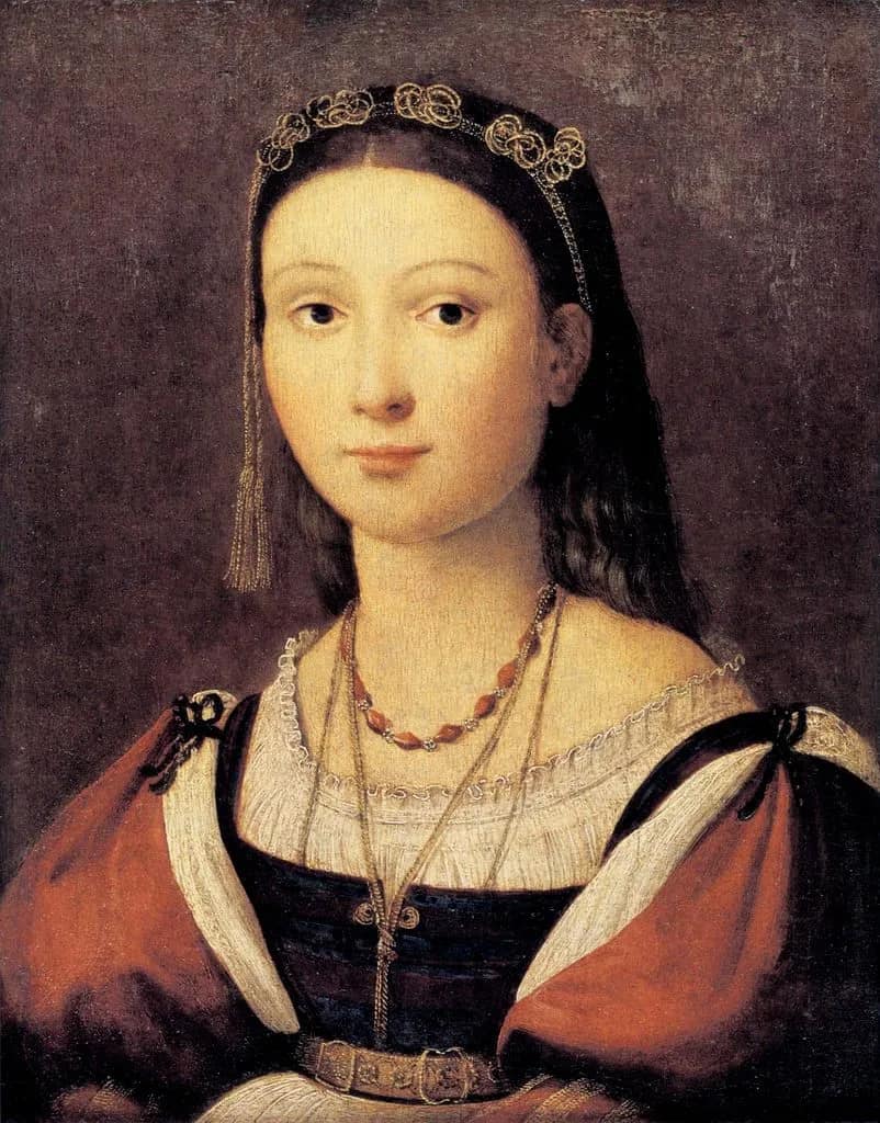 Старший ребенок в семье Маркиза Мантуи Франческо Гонзага – дочь Элеонора, в 10-летнем возрасте начались переговоры о браке с племянником Папы Франческо Мария делла Ровере, будущим Герцогом Урбино. В декабре 1505 года составлен брачный договор о приданом в 30 тысяч дукатов (15 тысяч золотых и 5 тысяч в драгоценностях и одежде привозит жена в Урбино в момент свершения брака, а оставшиеся 10 тысяч выплачиваются по решению Герцогини-матери Урбино Элизабетты Гонзага). Элизабетта – приемная мать Герцога Урбино, у нее не было детей. Читайте в статье Загадки буквы S. Брак по доверенности заключили в Риме 2 марта 1505 года (жене Элеоноре 13 лет, мужу 16 ), жену представлял дядя Джованни Гонзага, присутствовали 18 Кардиналов.