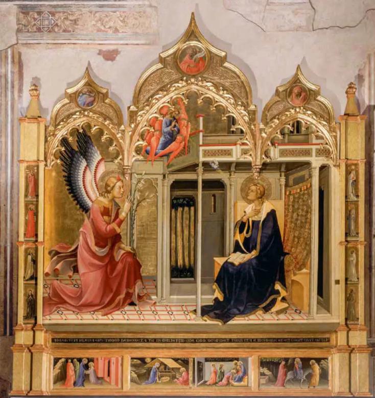 Церковь Святой Троицы — ключевой эпизод для понимания перекрестка флорентийского искусства начала 15 века — между традициями поздней готики 14 века и радикальными открытиями для нового. В течение чуть более десяти лет церковь заполнена этими тремя краеугольными камнями флорентийского искусства. Первой работой было Благовещение Лоренцо Монако (до сих пор в часовне Бартолини Салимбени в церкви Св.Троицы). Реконструкция в Палаццо Строцци “органично представляет внешний вид начала 15 века [ … ], идеальное расположение алтаря в сочетании с фресками и иконографическая последовательность декоративной программы, посвященной Марии,, прославление ее непорочности”.
