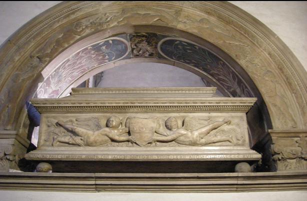 Двойная часовня Строцци (из двух смежных помещений) в Санта Тринита была амбициозным проектом: “когда-то семейная гробница, ризница и хоры представляли собой беспрецендентное явление”. Место предназначалось не только для чествования семьи, оно было открыто для города: в течение некоторого времени здесь заседал гонфалоньер Единорога (возглавлял один из округов, на которые была разделена Флоренция). Палла Строцци собирался собрать здесь библиотеку и открыть ее для публики: это было бы впервые в Европе. Но в 1433 году Палла Строцци изгнан из Флоренции , уехал в Падую и никогда не вернулся. Такая мера закрепила окончательную победу Медичи и их сторонников над фракцией, возглавляемой семьями Строцци и Альбицци. Именно Козимо Медичи старший создал в монастыре Сан Марко первую библиотеку Европы, открытую для публики.