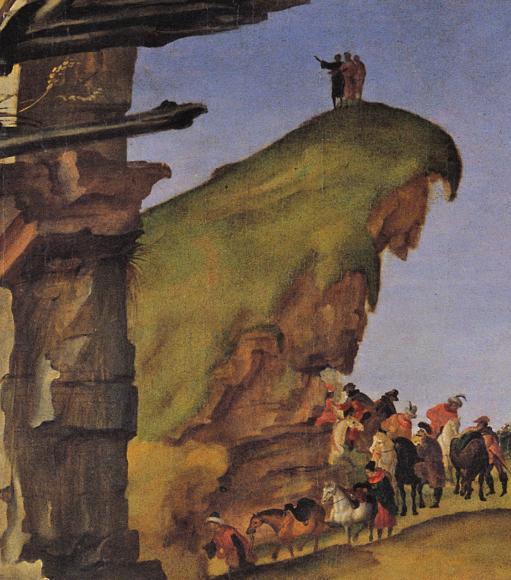 Похожие фигуры появляются у Филиппино, на заднем плане на далеком холме, фигура указывает на звезду, и похожая сцена появляется слева. Наблюдатели на двух картинах видят звезду без использования научных инструментов.
