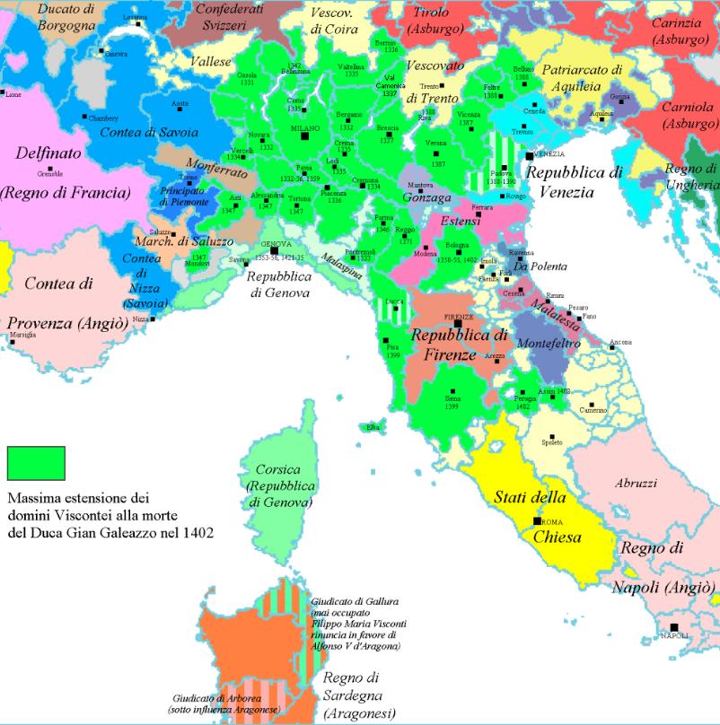 Оба были осмотрительны в динамичной политике того времени и умело использовали военные возможности, открывающиеся во времена кризиса и распада государства Висконти.