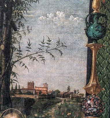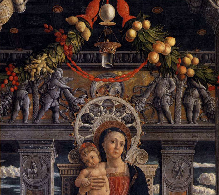 Конечно, Андреа работает а Падуе в то время, но он женат на дочери венецианского художника Джованни Беллини и наверняка в курсе всех изобретений. Знатный заказчик работы Грегорио Коррер также в курсе венецианских новостей.