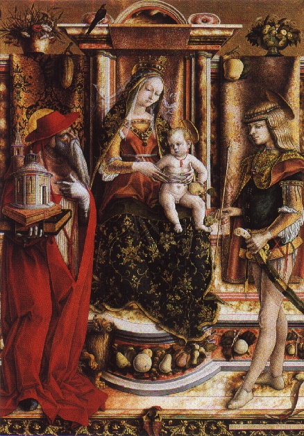 Самое старое изображение подобного кубка, но без эмали мы видим на работе художника Карло Кривелли.